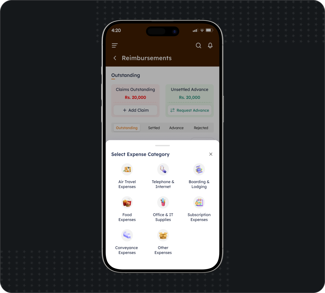 Automate expense claims with OCR bill reading, policy-based approval workflows, and real-time status updates.