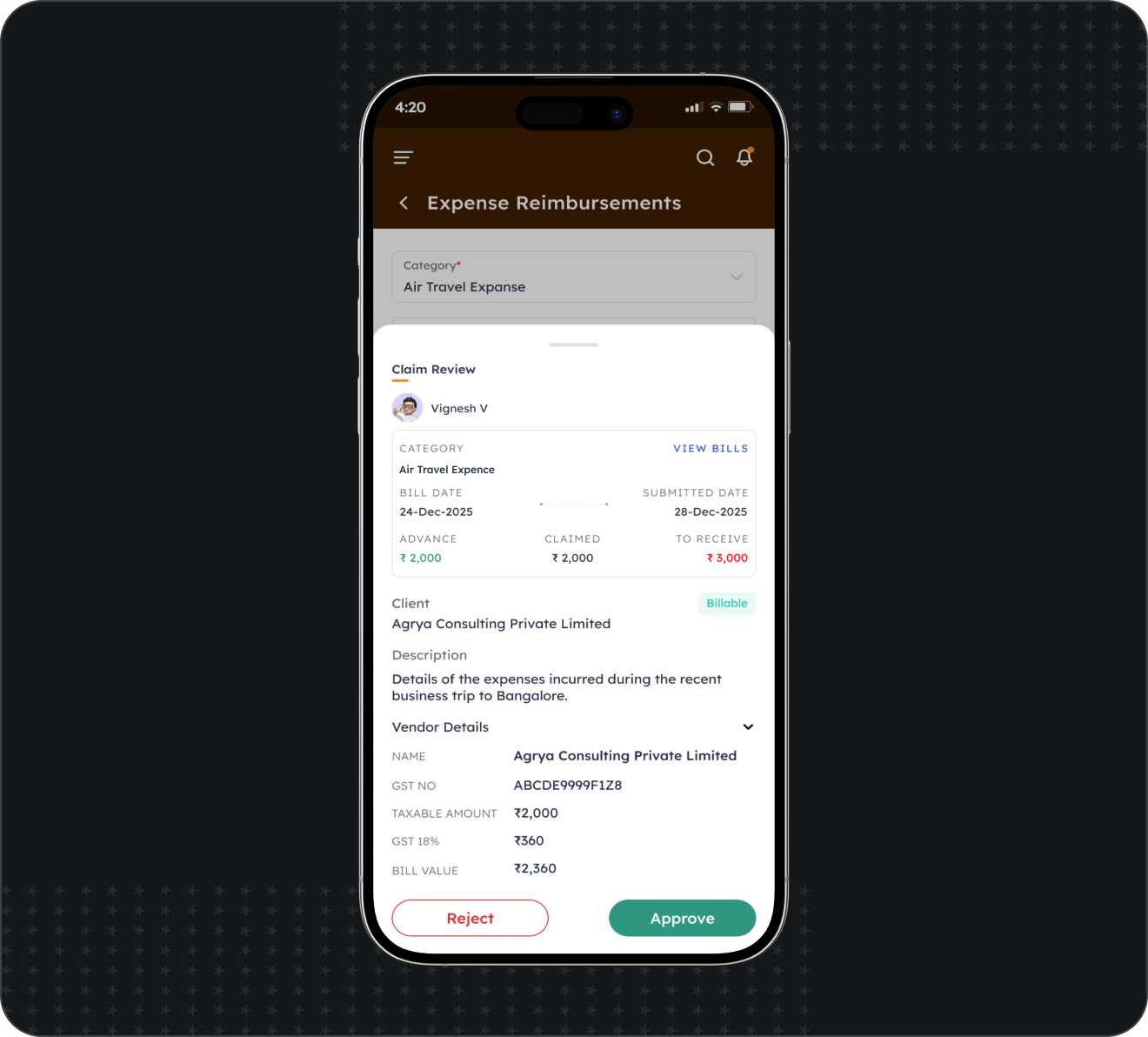 The Logic: The GST invoice scanner reads the amount. The system auto-checks the budget policy.