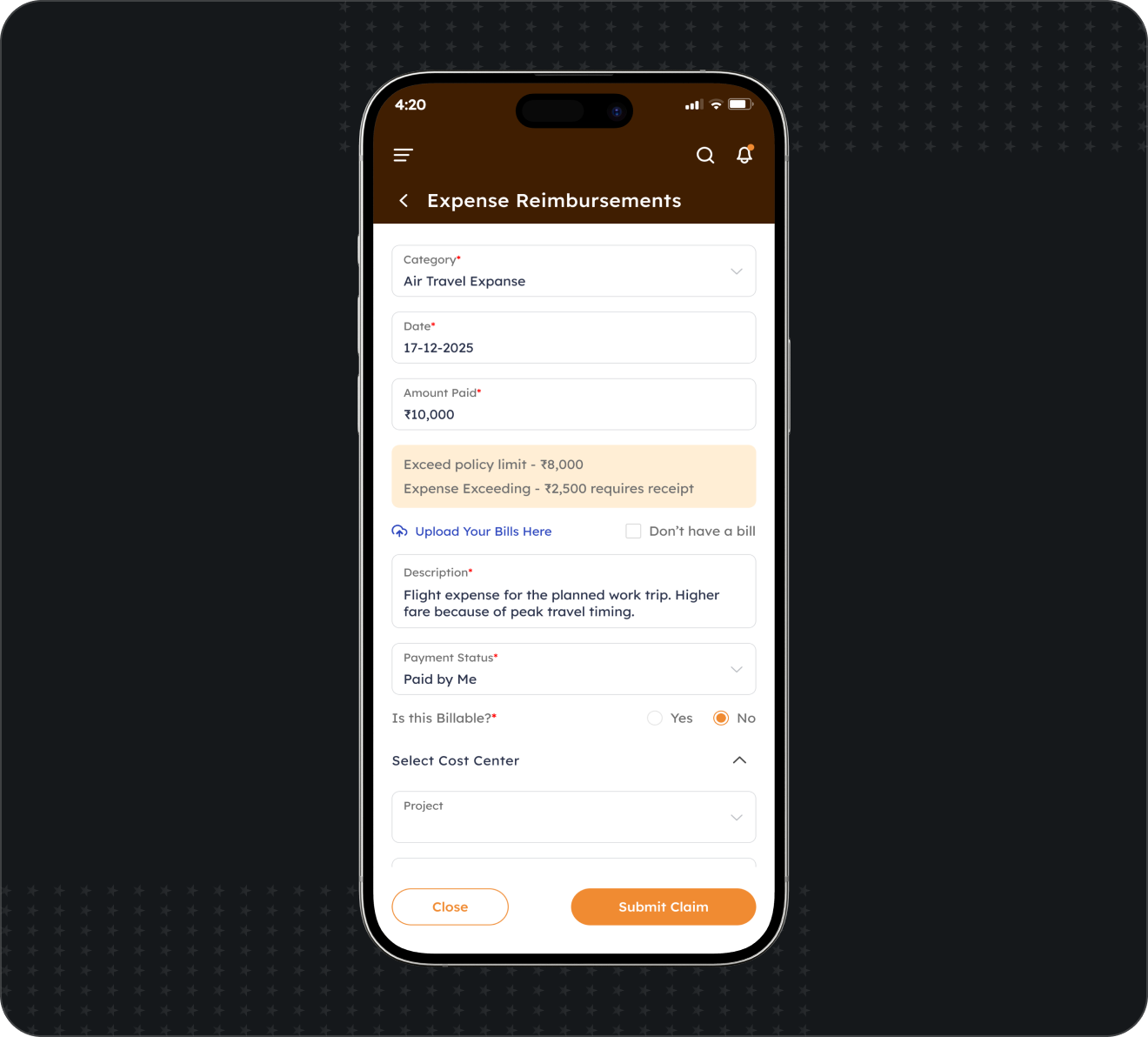 Expense management India: We offer an end-to-end reimbursement software India solution that handles multi-level approvals.