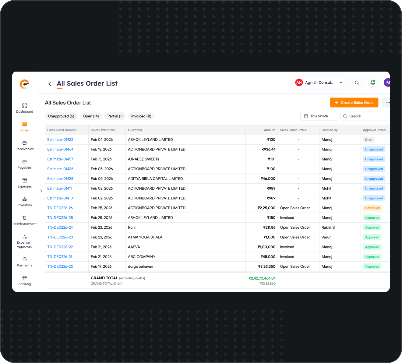 A: Visibility includes the customer. With Effortless, the rep can generate the Proforma or Tax e-Invoice (if configured) instantly on the app (you can set final approval flow as well) and share it via your business WhatsApp or business email. The customer sees the bill immediately, speeding up the "Order-to-Payment" mental cycle.