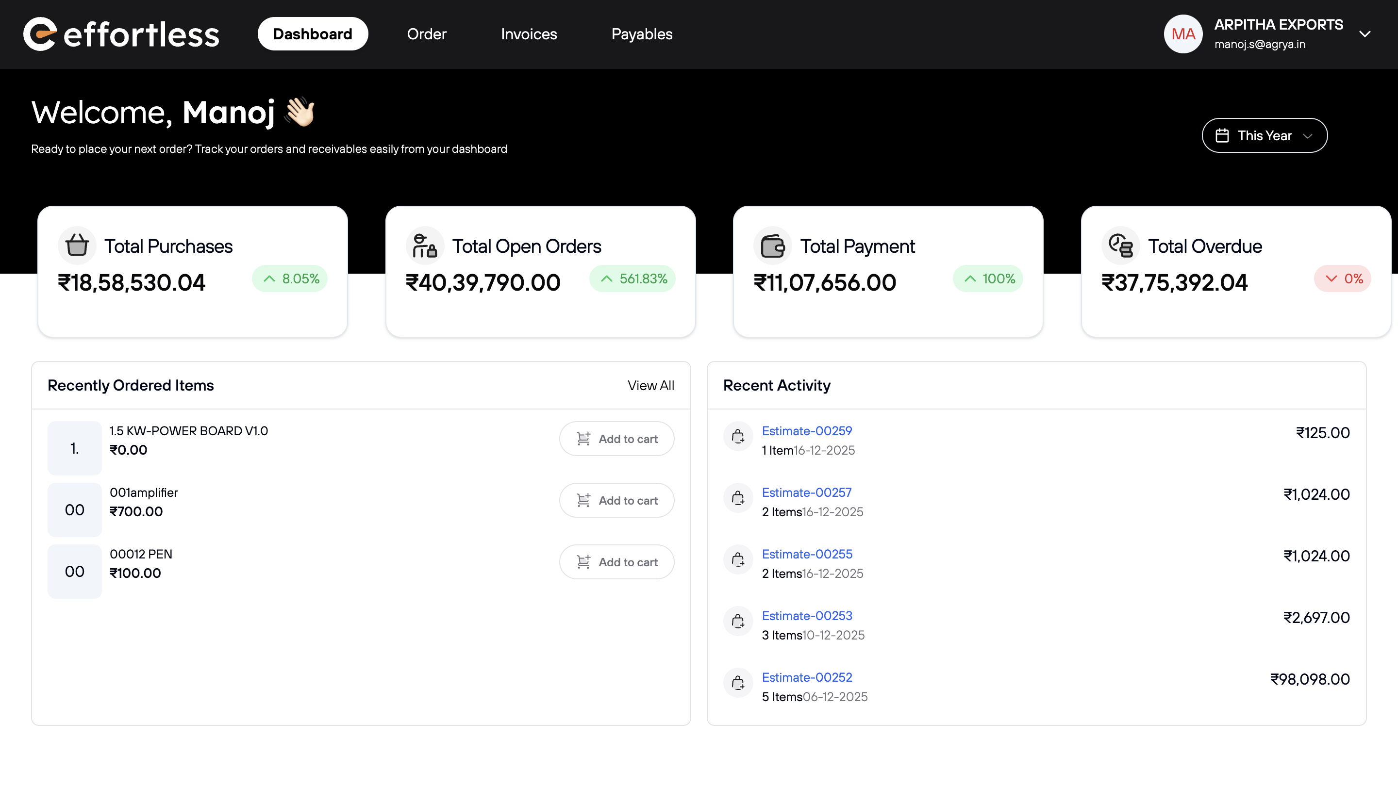 Effortless helps Indian distributors and manufacturers launch B2B buyer portals that connect sales, inventory, and accounting—all in one platform.