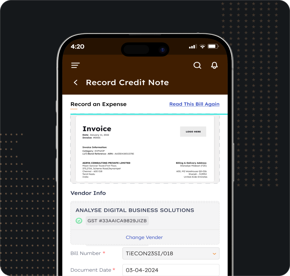Extracted: GSTIN, Vendor Name, Line items, Tax amounts, Bank Details & Validates with GSTN, TDS Applicability, RCM Applicability, Bank Validation
