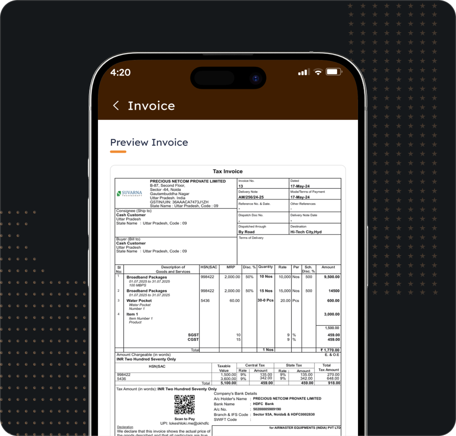 Have your Invoice Specific UPI QR Code on Invoice for Smoother Collections & Tracking.